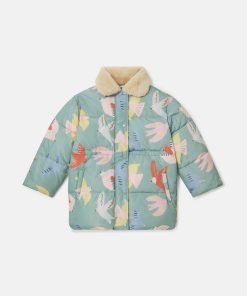 Stella McCartney Kid’s Girls (2–14 Years) Dove Print Teddy Collar Puffer Coat | Gray & Multicolor