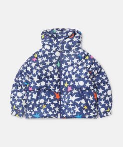 Stella McCartney Kid’s Girls (2–14 Years) Star Print Hooded Puffer Coat | Blue & Multicolor