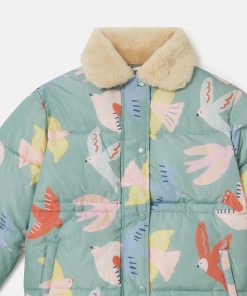 Stella McCartney Kid’s Girls (2–14 Years) Dove Print Teddy Collar Puffer Coat | Gray & Multicolor