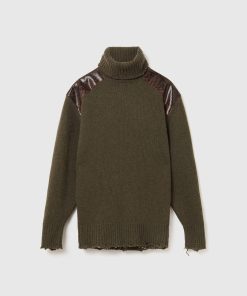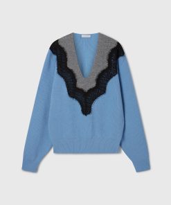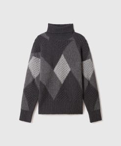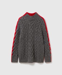 Stella McCartney Women’s Ready To Wear Laced Sleeves Cableknit Turtleneck Sweater | Red & Grey