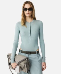 Stella McCartney Women’s Ready To Wear Laced Sleeves Cableknit Turtleneck Sweater | Red & Grey