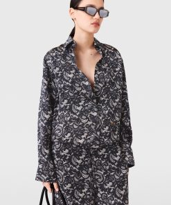 Stella McCartney Women’s Ready To Wear Lace Print Oversized Drawstring Pants | Black