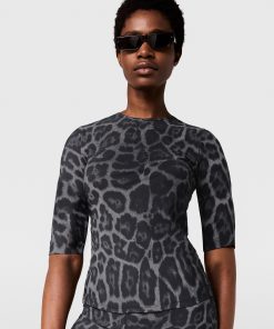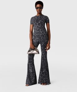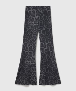 Stella McCartney Women’s Ready To Wear Leopard-print Mid-rise Flared Pants | Ash Grey