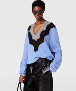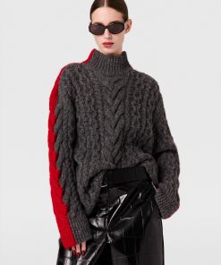 Stella McCartney Women’s Ready To Wear Laced Sleeves Cableknit Turtleneck Sweater | Red & Grey