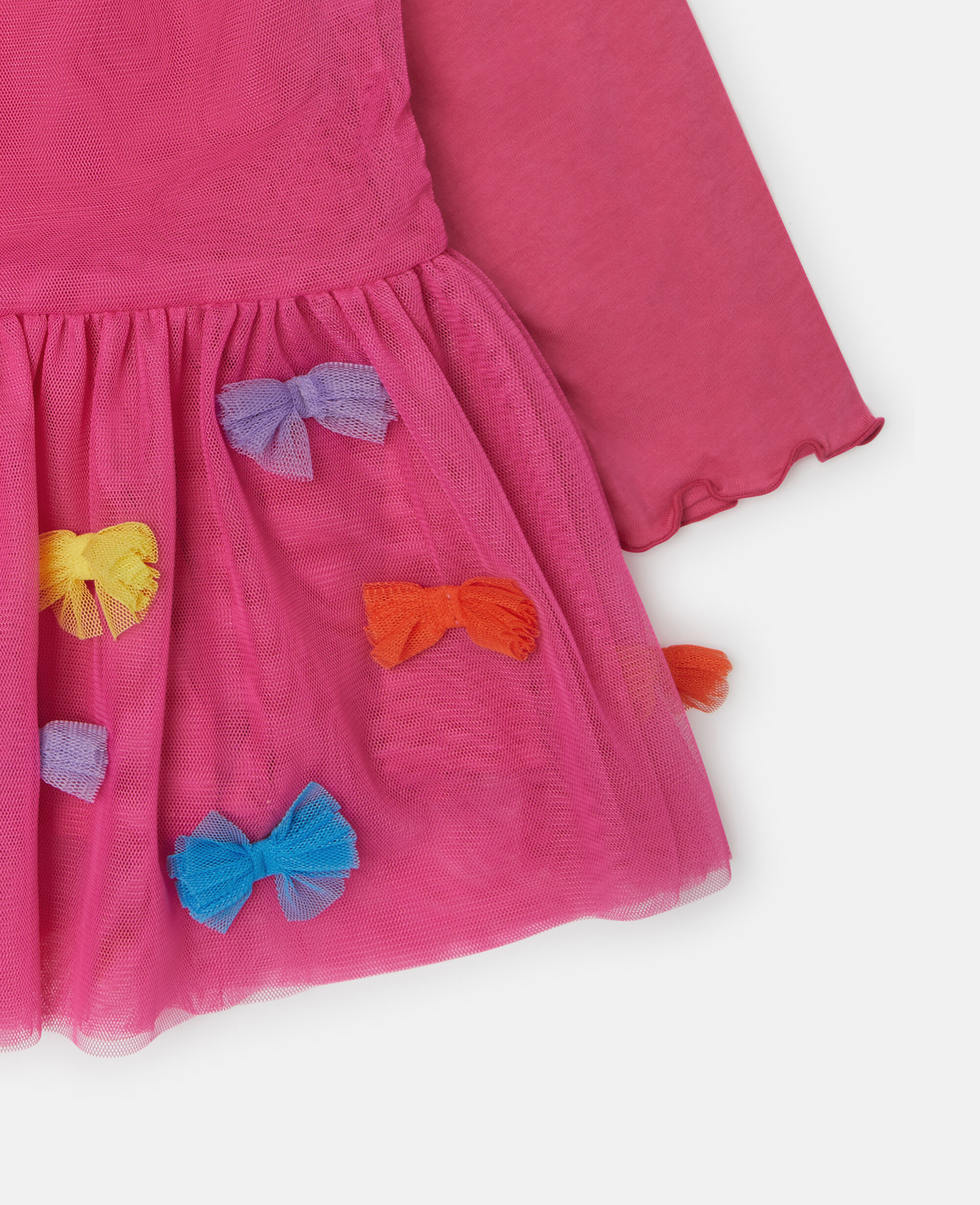 Playful patterns and prints are a Stella McCartney Kids signature. Beaming joy in our latest sustainable luxury childrenswear collection, this dress is crafted from super soft recycled materials. Embroidered on the skirt, it is both a Stella Kids fashion statement and staple.