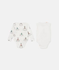 The Stella Kids Spring Summer 2025 collection playfully shows the next generation that animals are friends, not fashion. The season’s funny, feline face is printed on these soft, organic cotton rompers.
