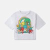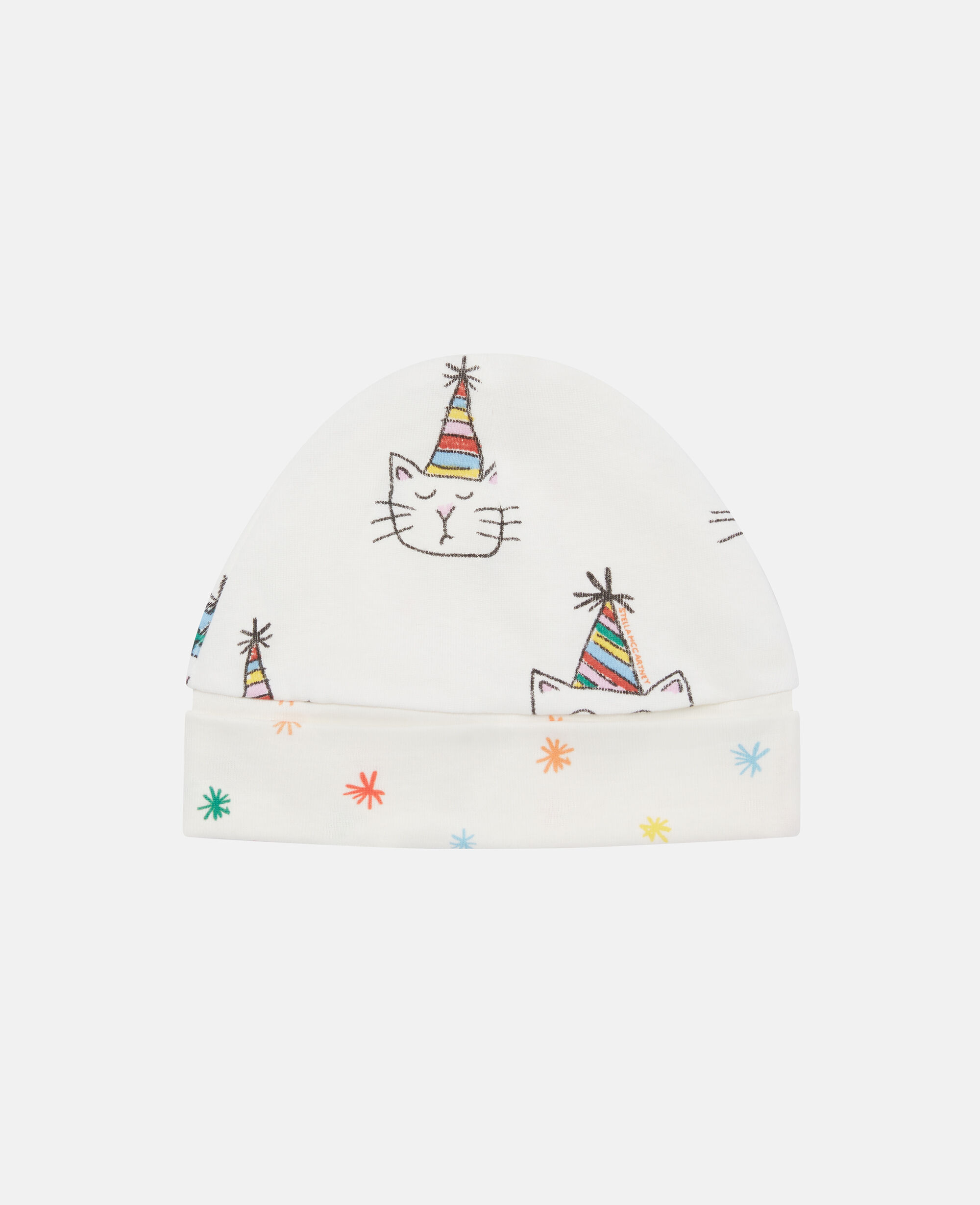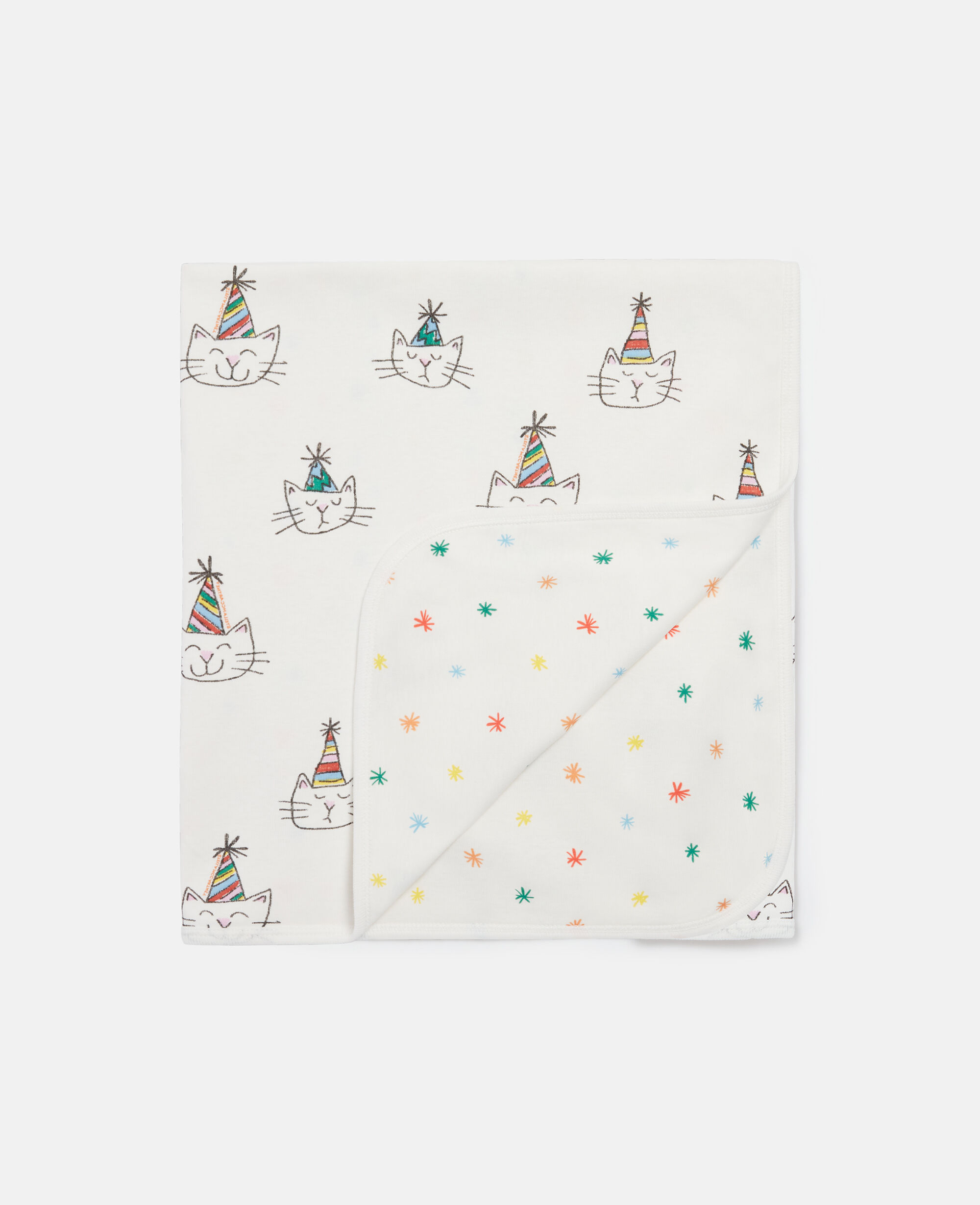 The Stella Kids Spring Summer 2025 collection playfully shows the next generation that animals are friends, not fashion. The season’s funny, feline face is printed on this soft, organic cotton romper set.