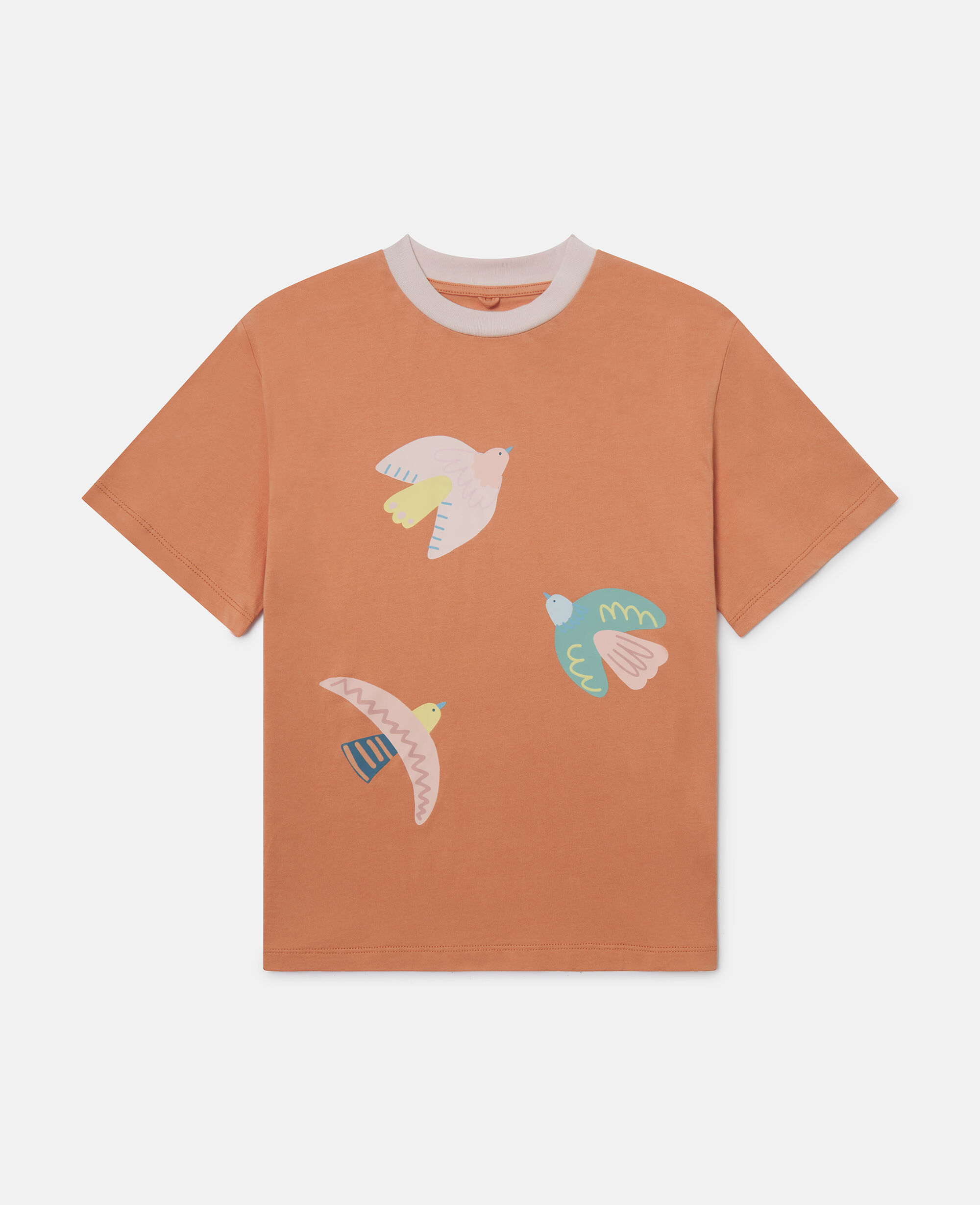 A love for animals can take wing at any age. This soft, organic cotton t-shirt is printed with soaring doves – a symbol of peace and a continuation of Stella McCartney’s avian-inspired Summer 2025 collection. Pair it with the coordinating sweatpants from our latest sustainable luxury childrenswear edit.
