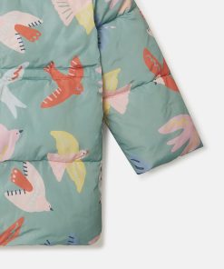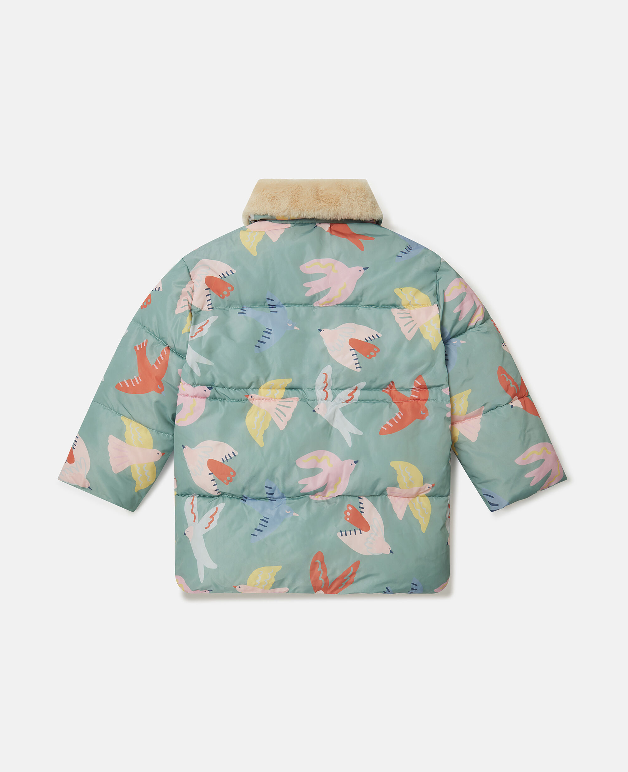 Stella McCartney Kid’s Girls (2–14 Years) Dove Print Teddy Collar Puffer Coat | Gray & Multicolor