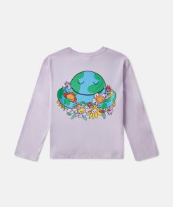 This long-sleeve top is made from soft organic cotton jersey. For Fall/Winter 2025, Stella McCartney Kids is inspired by the love we have for our one shared home – Mother Earth. Smiling flowers, hearts and other earthy friends beam across a collection crafted from 96% conscious materials.