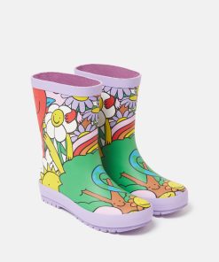 These rainboots are made from recycled rubber. For Fall/Winter 2025, Stella McCartney Kids is inspired by the love we have for our one shared home – Mother Earth. Smiling flowers, hearts and other earthy friends beam across a collection crafted from 96% conscious materials.