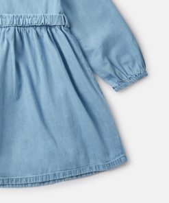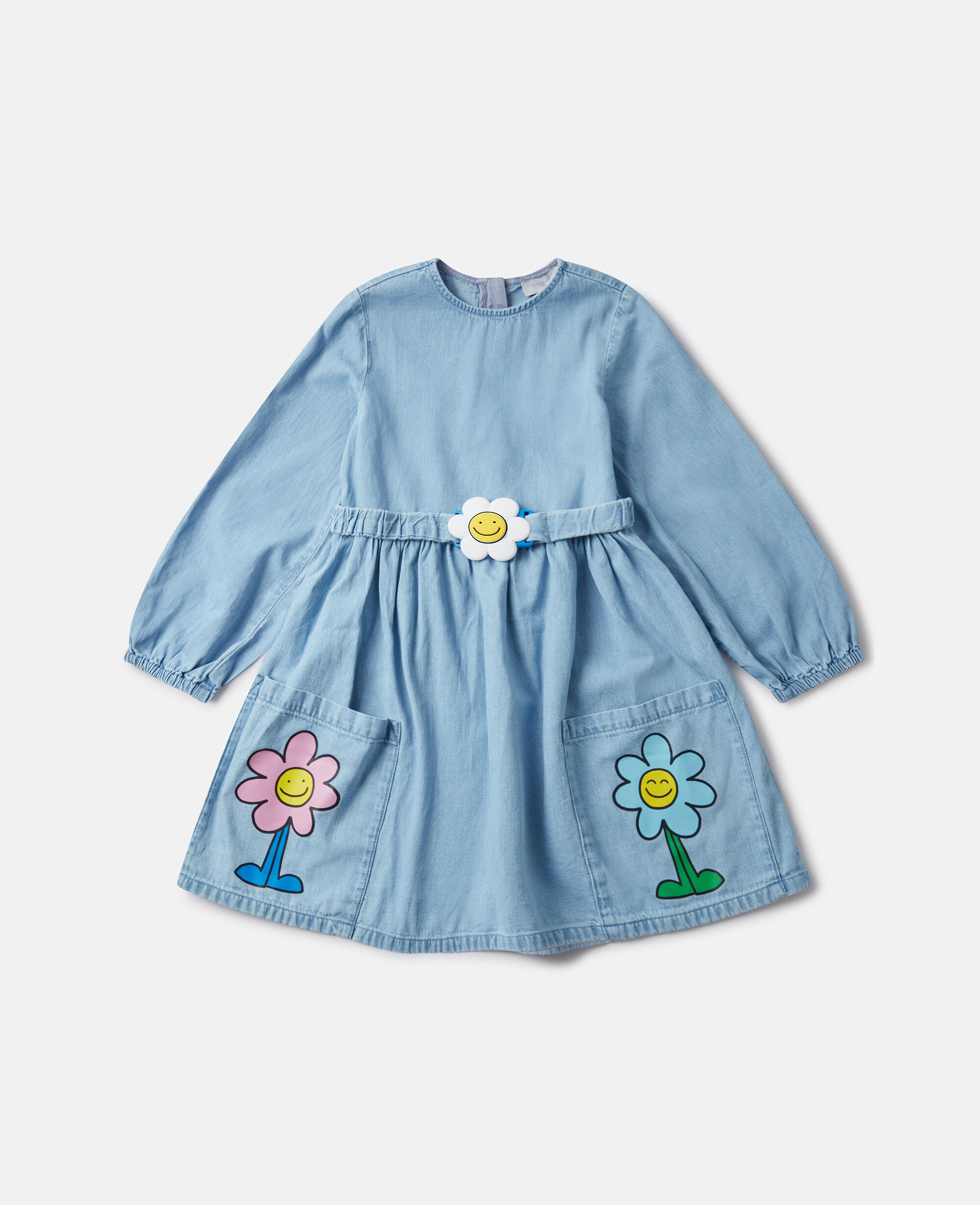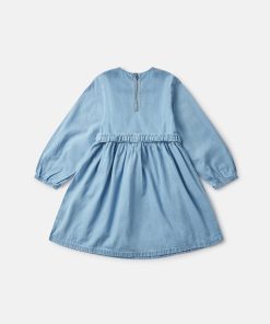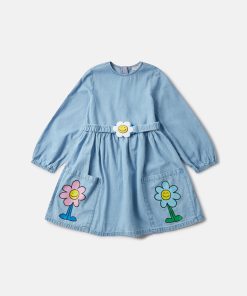 This long-sleeve dress is made from soft organic cotton denim. For Fall/Winter 2025, Stella McCartney Kids is inspired by the love we have for our one shared home – Mother Earth. Smiling flowers, hearts and other earthy friends beam across a collection crafted from 96% conscious materials.