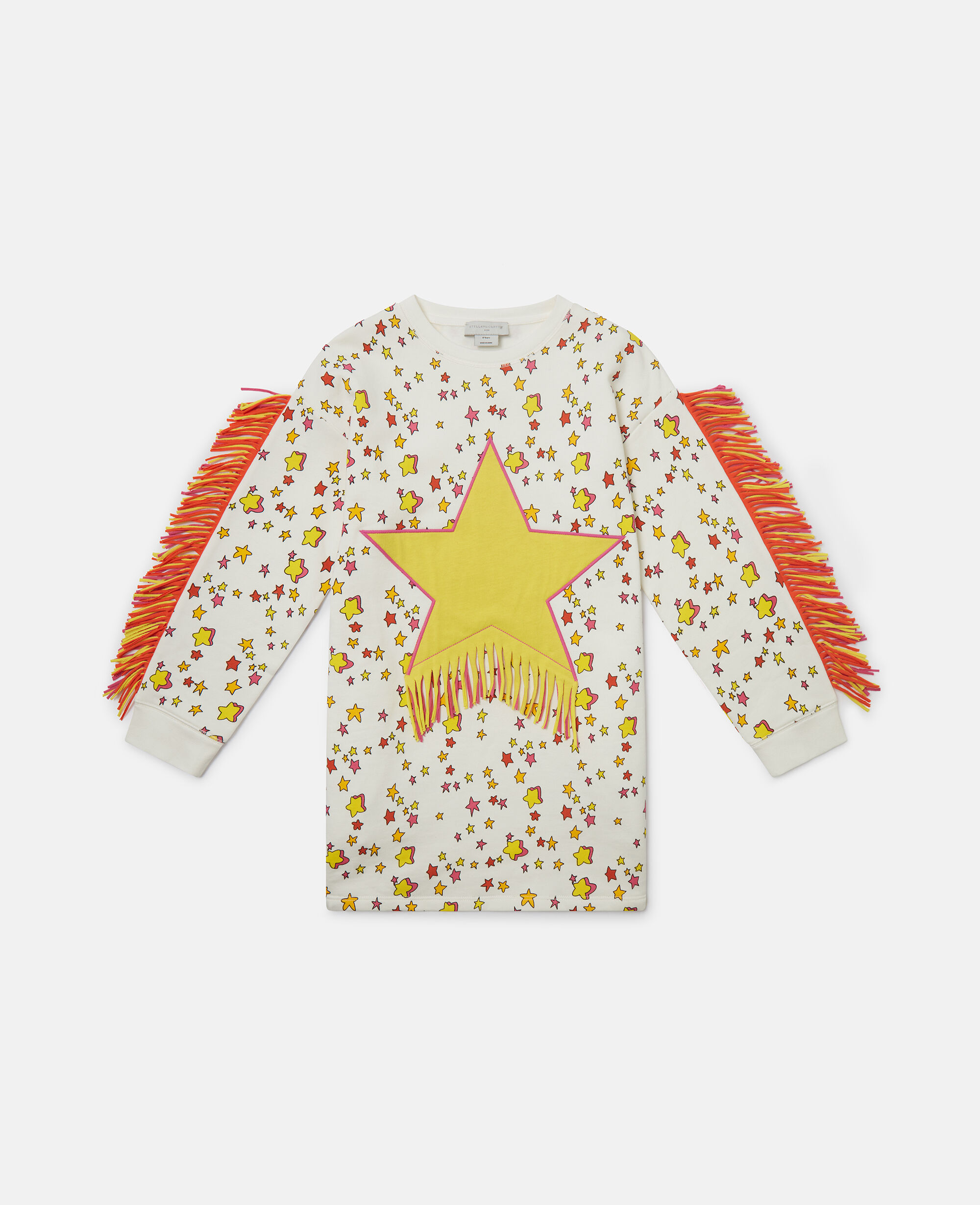 Playful patterns and prints are a Stella McCartney Kids signature. Beaming joy in our latest sustainable luxury childrenswear collection, this dress is crafted from super soft organic cotton with a star printed on the front. Topped with fringing, it is both a Stella Kids fashion statement and staple.