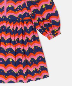 Playful patterns and prints are a Stella McCartney Kids signature. Beaming joy in our latest sustainable luxury childrenswear collection, this dress is crafted from super soft forest-friendly viscose with a wavy star pattern all-over. Topped with a pleated skirt, it is both a Stella Kids fashion statement and staple.