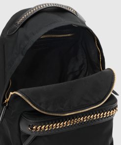 An icon in motion, Stella McCartney’s coveted Falabella is revisited in a functional silhouette. The immediately recognizable glinting diamond-cut chain is stitched along the front and main compartments of this versatile, vegan backpack – designed to carry everyday essentials on the go.