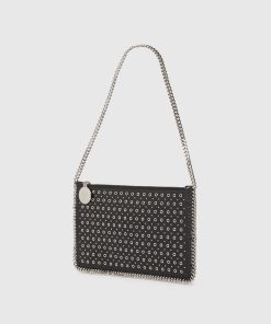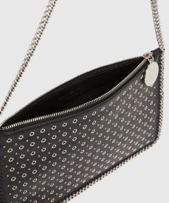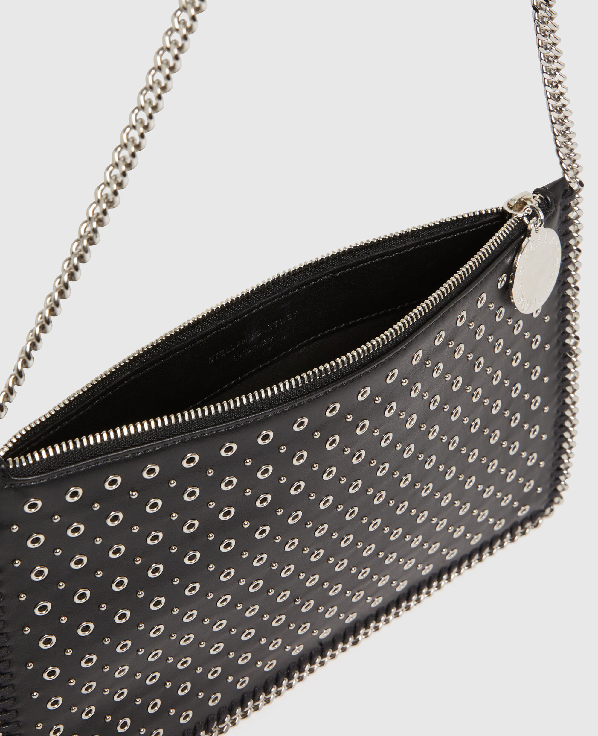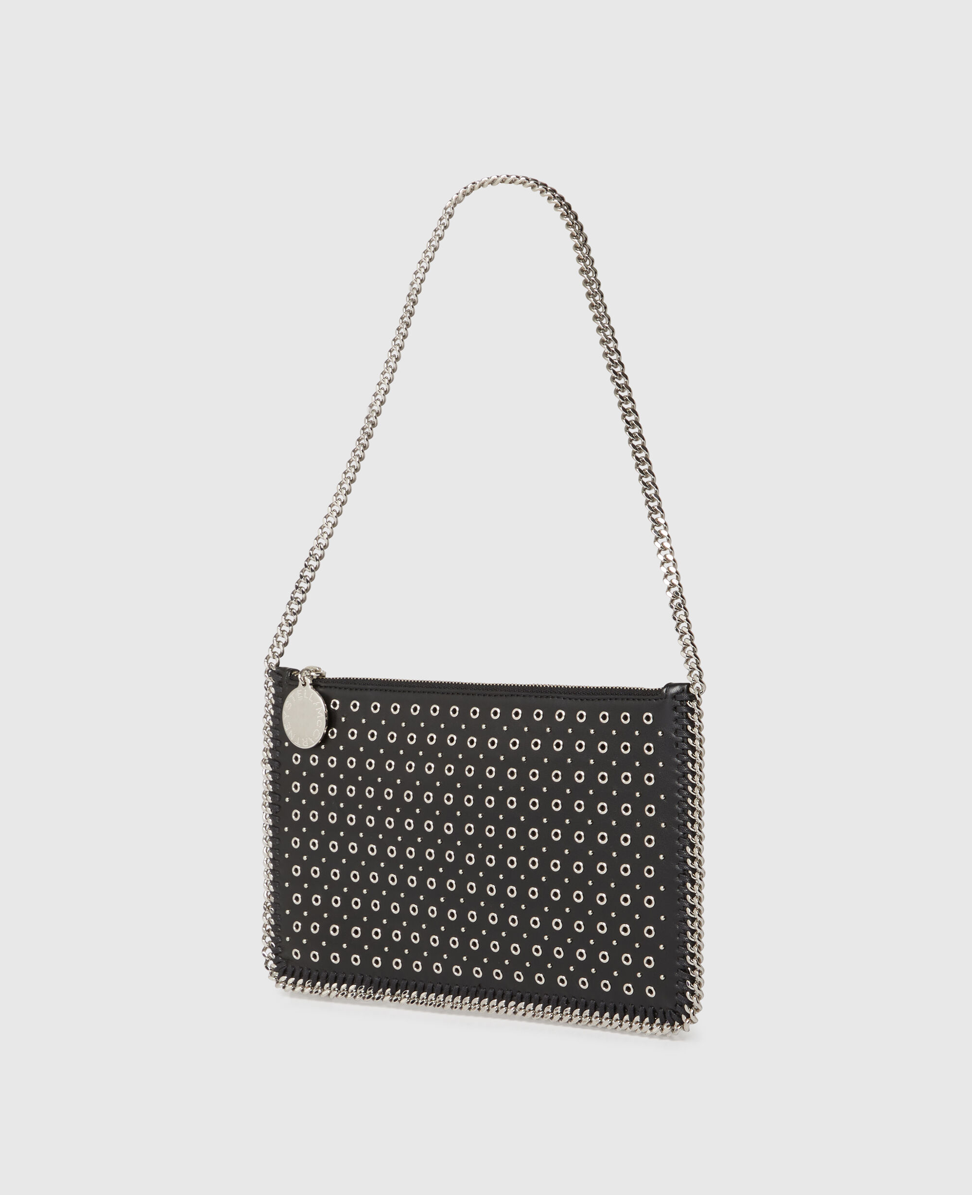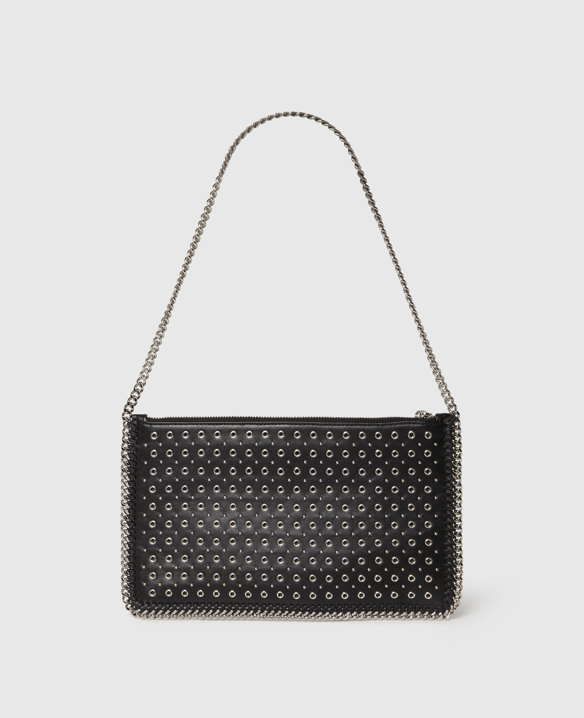 The iconic Falabella is revisited in a sleek pochette silhouette for Fall 2025, defined by hand-studded eyelets for a rock attitude. The immediately recognizable glinting diamond-cut chain outlines its silhouette – reinterpreted for this playful, vegan shoulder bag. It is crafted cruelty-free for an effortlessly ethical, day-to-night appeal.