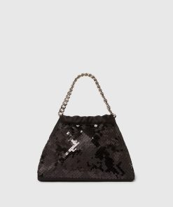 The new Falabella drawstring crossbody bag reimagines our vegan icon, with PVC-free, recycled polyester sequins all-over. Signature diamond-cut recycled brass and recyclable aluminum chains serve as two top handles and a crossbody strap, with enough room for your phone, wallet and daily essentials. Fully lined with monogrammed recycled fabric, wear it over the shoulder or sling it across your ensemble for a classic day-to-night look.