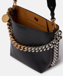 The soft structure of this Frayme bucket bag makes it a masterclass in wear-anytime appeal. Consciously crafted from smooth Alter Mat, our vegan alternative to animal leather, the bucket bag has an adjustable shoulder strap and an exaggerated version of our diamond-cut Falabella chain across its front.