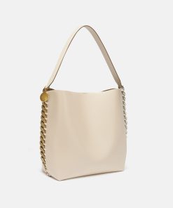 The Frayme tote bag is a bold cruelty-free style, taking classic brand codes and reenergising them with a modern visual narrative. Inspired by our iconic Falabella, an oversized alumnium chain frames the edges – complementing the smooth vegan alternative to animal leather. Carry it on one shoulder or in your hand for striking wear-anytime appeal.