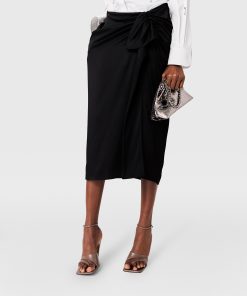 Stella McCartney Women’s Ready To Wear Knotted Asymmetric Midi Skirt | Black
