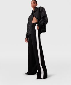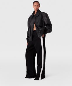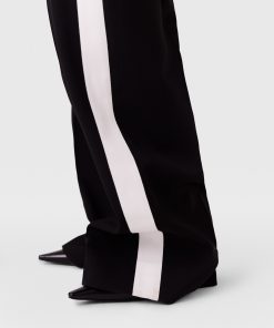 Iconic Savile Row tailoring is foundational to every Stella McCartney collection. For Spring 2025, these pants are immaculately constructed from fully traceable RWS-certified wool and tailored to a low-rise, straight-leg silhouette with tuxedo stripes down both sides.