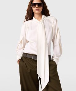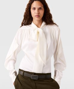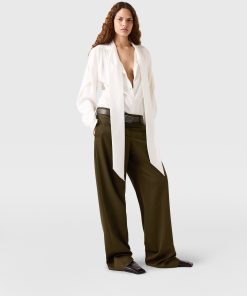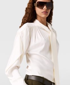Spun from forest-friendly viscose, this top begins with a tied neckline that streams down past the waist. Floating over the body, its slinky outline is bolstered with shoulder pads and balloon sleeves. Pair it with iconic Stella McCartney Savile Row tailored pants.