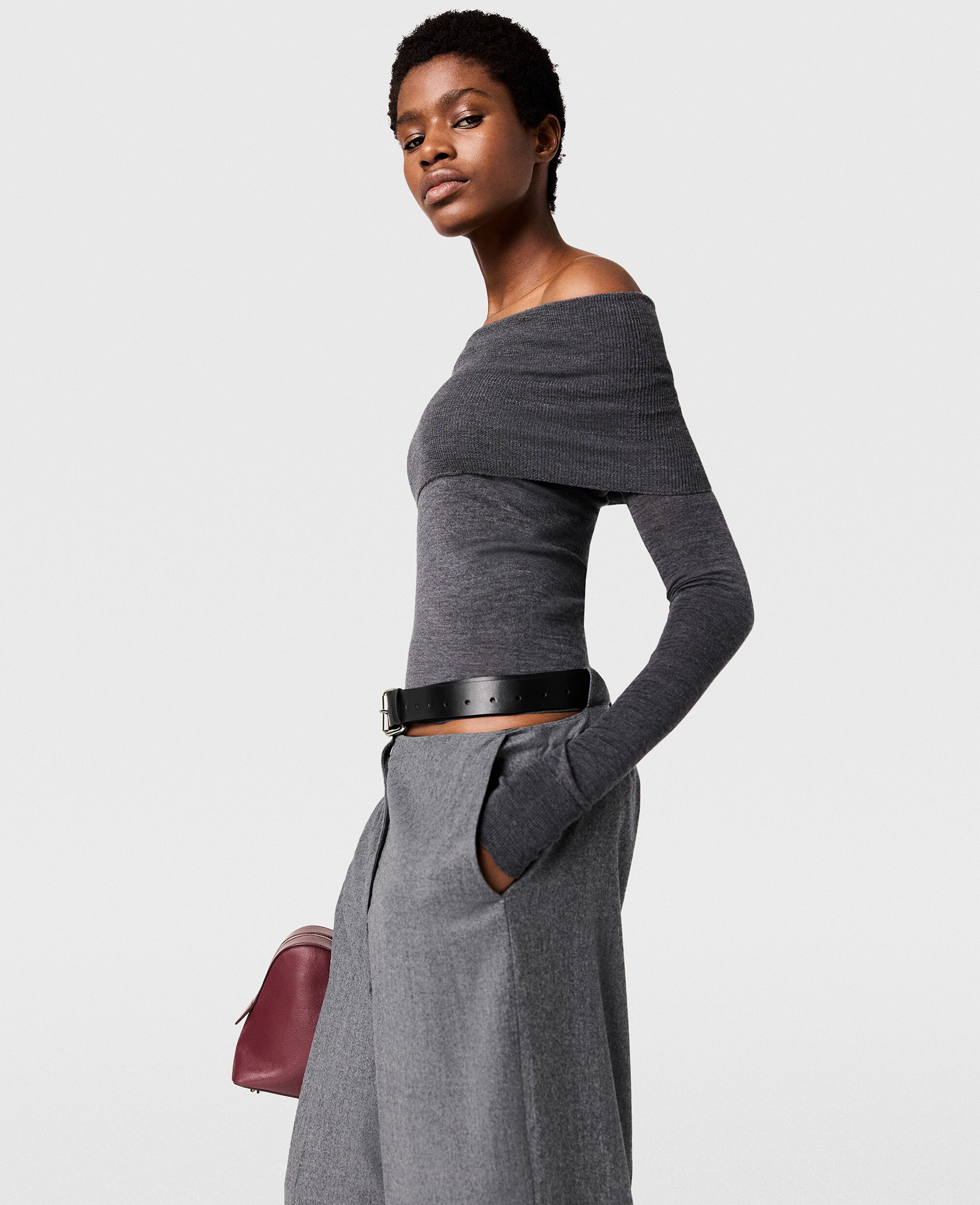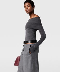Spun from a supremely soft, light blend of RWS-certified wool, this minimal sweater is topped with a straight-neck – sensually exposing the shoulders and décolletage. Contrast its slinky silhouette with baggy Stella McCartney denim jeans and vegan heels.