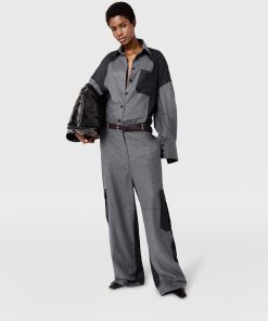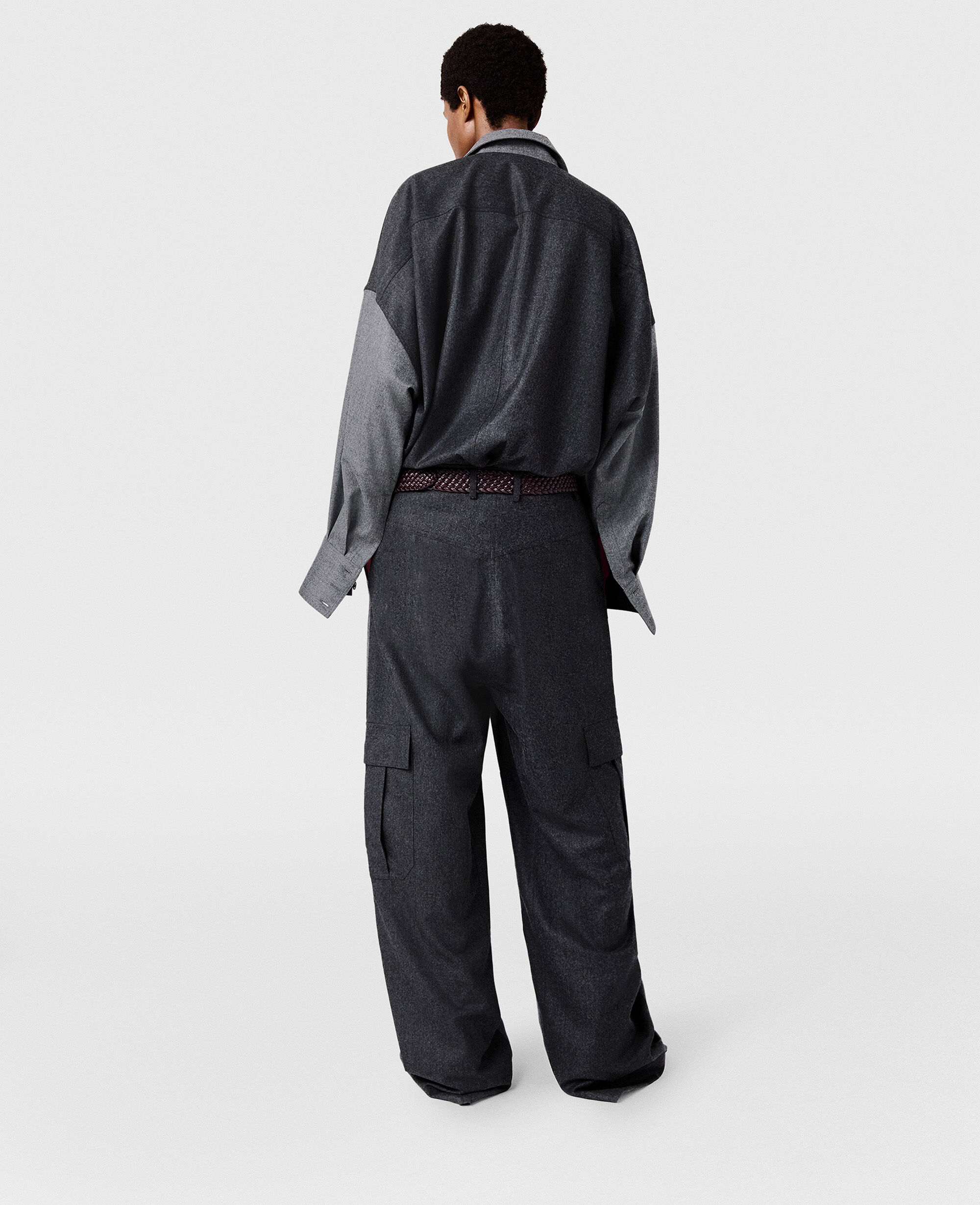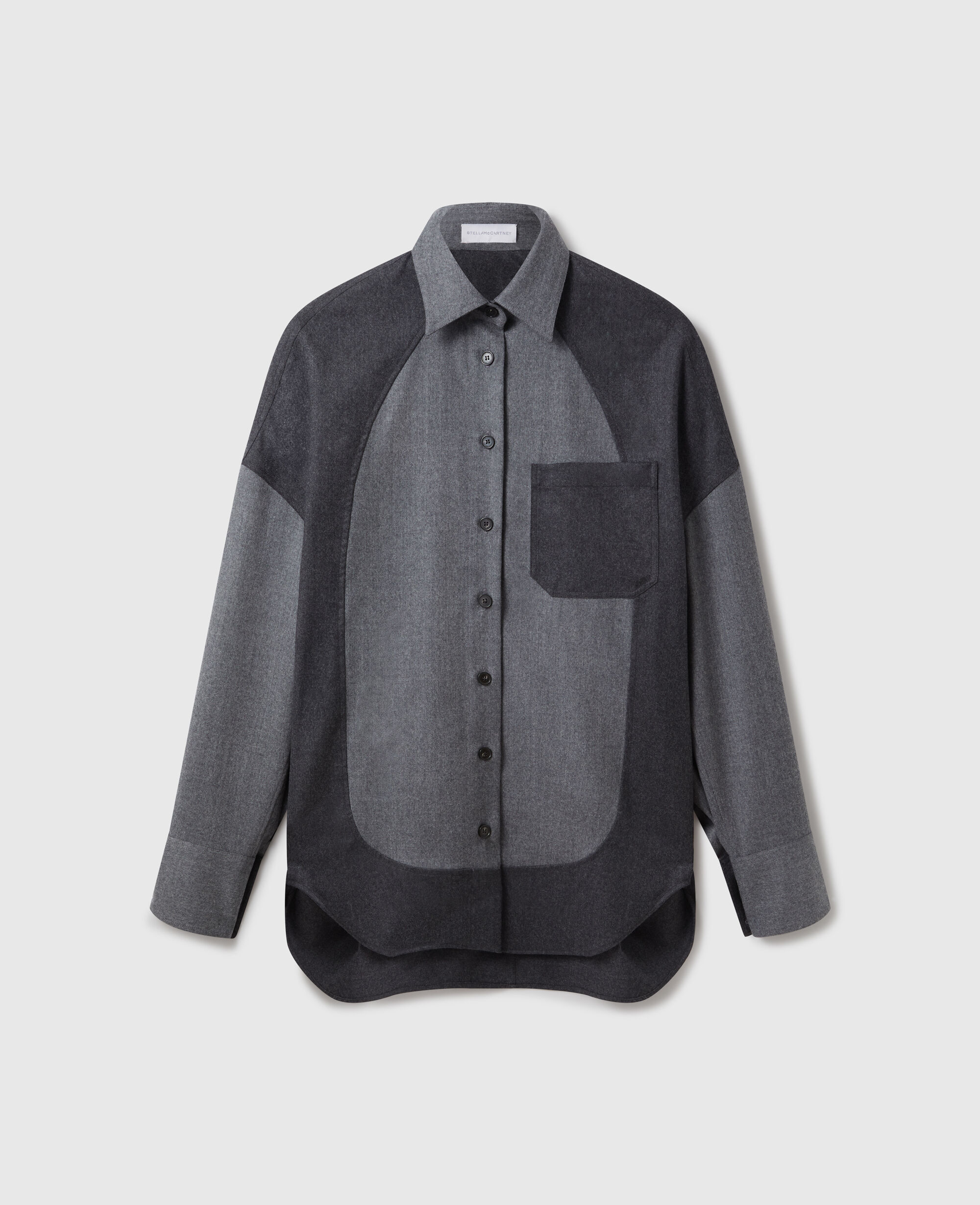 The daytime pajama shirt is reimagined seasonally by Stella McCartney, now in a paneled edition constructed from contrasting panels of cozy RWS-certified wool flannel. Its oversized silhouette is topped with a classic collar and buttoned cuffs. Pair it with the coordinating pants.