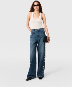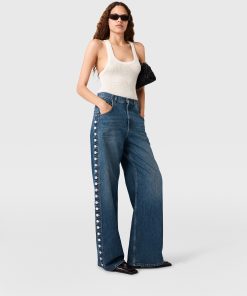Denim is iconic to Stella McCartney, embodying our elevated yet effortless codes. Crafted from luxuriously weighted organic cotton, these voluminous jeans are cut to a mid-rise, straight-leg silhouette with a vintage wash and poppers studded along each leg. Pair yours with a slinky top and kitten heels.