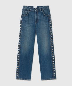 Denim is iconic to Stella McCartney, embodying our elevated yet effortless codes. Crafted from luxuriously weighted organic cotton, these voluminous jeans are cut to a mid-rise, straight-leg silhouette with a vintage wash and poppers studded along each leg. Pair yours with a slinky top and kitten heels.