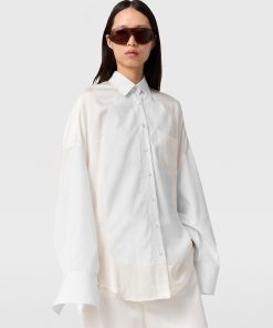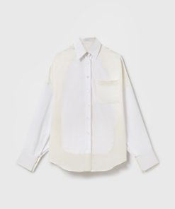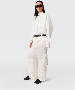 The daytime pajama shirt is reimagined seasonally by Stella McCartney, now in a tuxedo-inspired paneled edition. Constructed from fluid forest-friendly viscose satin and organic cotton, its oversized silhouette is topped with a classic collar and buttoned cuffs. Pair it with the coordinating pants.