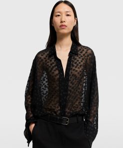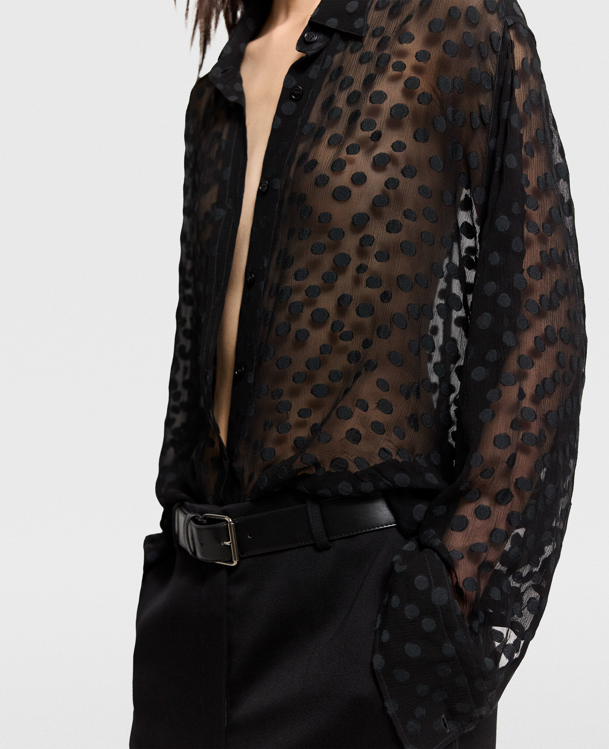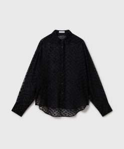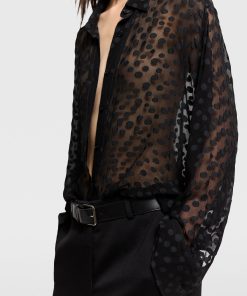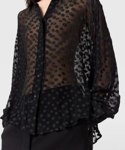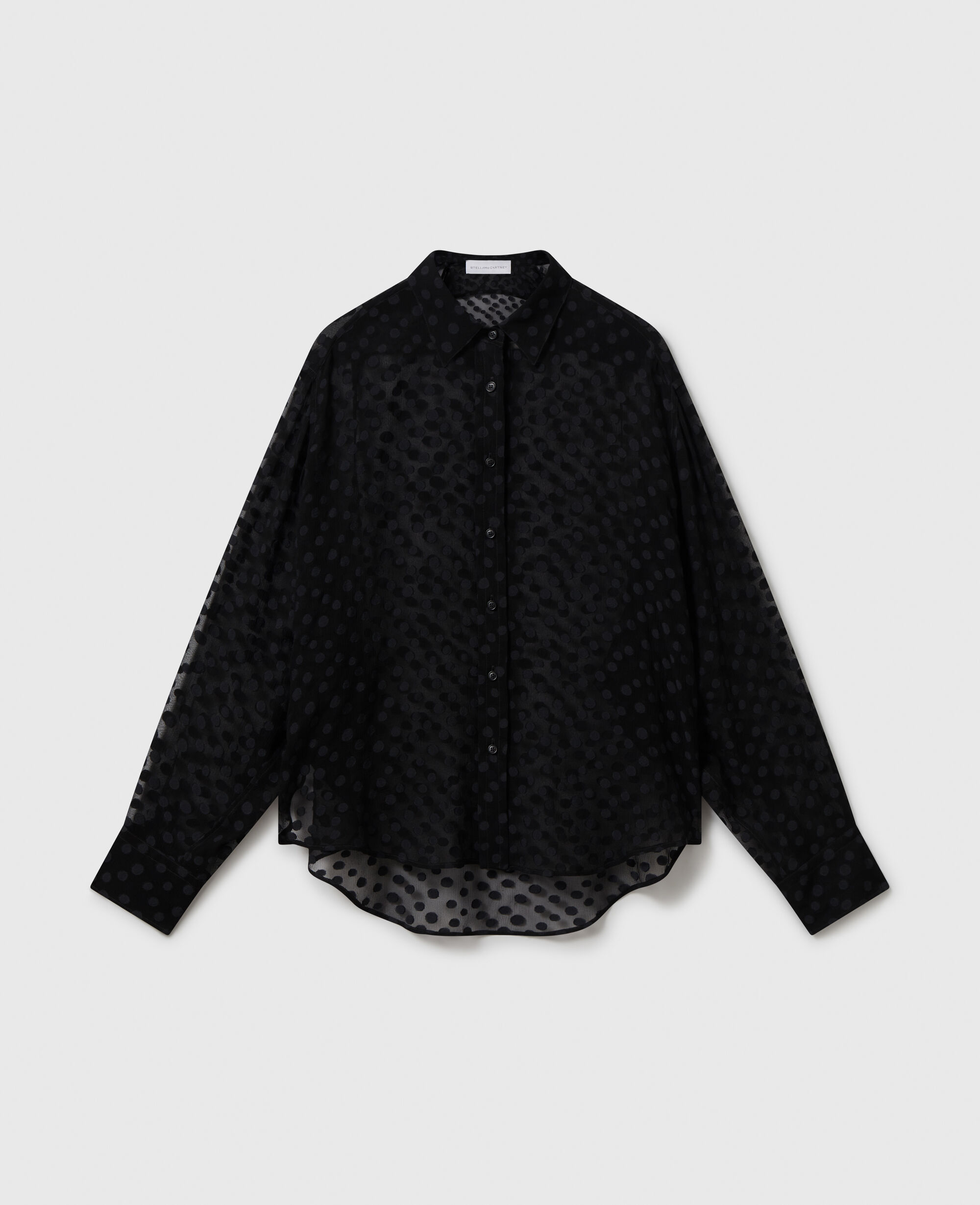 Spun from organic silk chiffon, this sheer polka-dot shirt blends masculine with feminine codes in a classically Stella McCartney way. Topped with a soft, pointed collar and buttoned cuffs, it perfectly balances traditional elements with sexy nuances for day-to-night appeal.