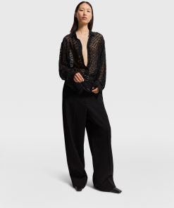 Spun from organic silk chiffon, this sheer polka-dot shirt blends masculine with feminine codes in a classically Stella McCartney way. Topped with a soft, pointed collar and buttoned cuffs, it perfectly balances traditional elements with sexy nuances for day-to-night appeal.