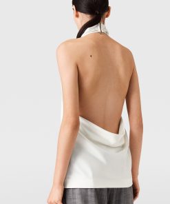 Spun from lustrous, forest-friendly viscose satin, this silky-smooth top begins wrapped around the neck. Draping into a flowing, clean-cut silhouette that stops by the waist, it’s poised to elevate a pair of vintage-wash denim jeans.