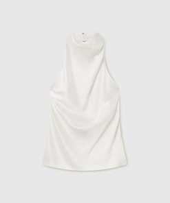 Spun from lustrous, forest-friendly viscose satin, this silky-smooth top begins wrapped around the neck. Draping into a flowing, clean-cut silhouette that stops by the waist, it’s poised to elevate a pair of vintage-wash denim jeans.