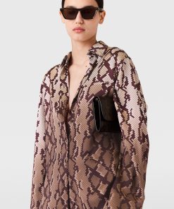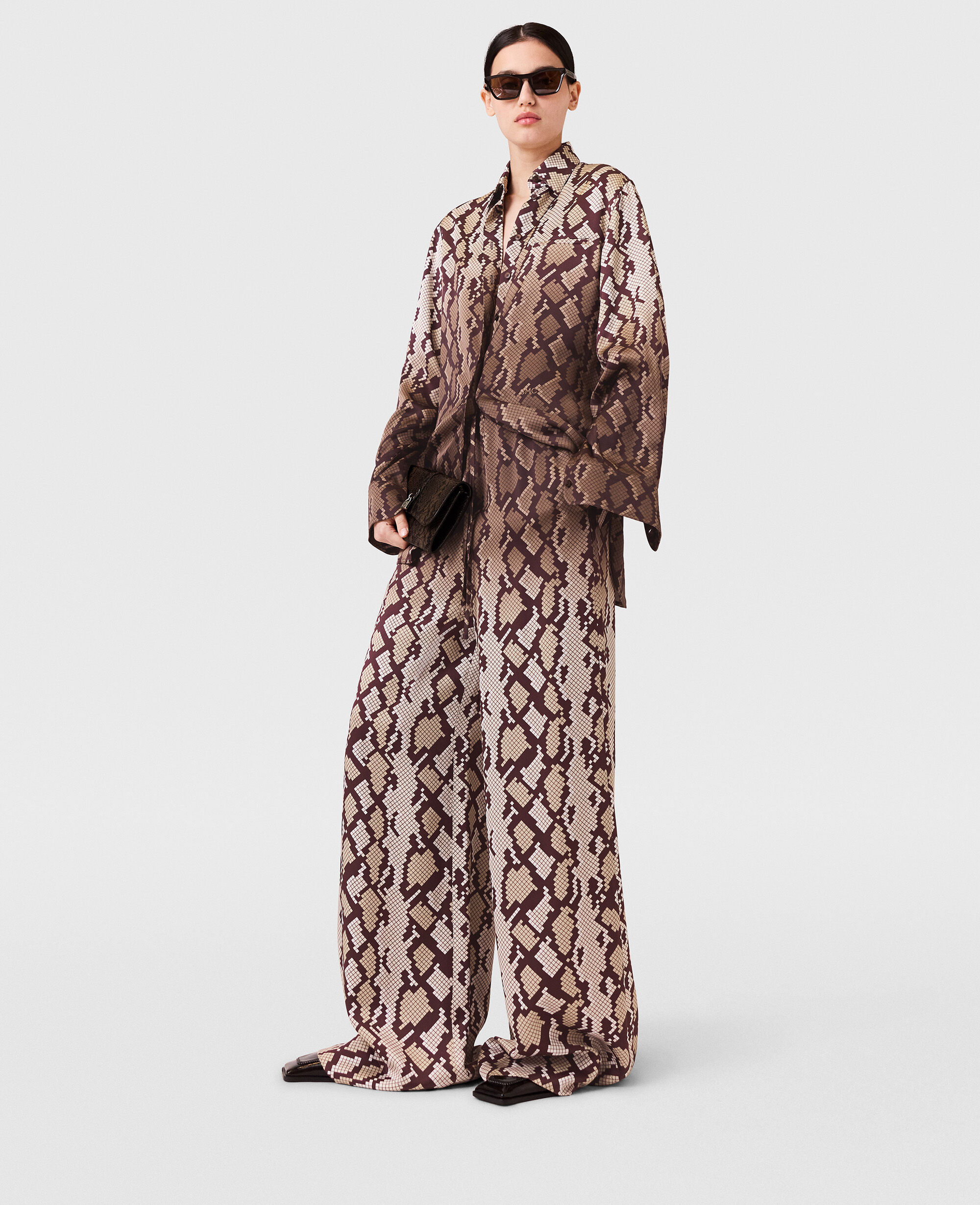 The daytime pajama set is reimagined seasonally by Stella McCartney, now in an all-over snake print. Spun from fluid forest-friendly viscose satin, the oversized silhouette of this shirt is topped with a pointed collar and tonal buttons. Pair it with the coordinating pants.