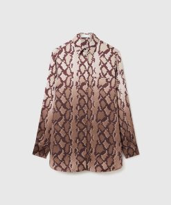 The daytime pajama set is reimagined seasonally by Stella McCartney, now in an all-over snake print. Spun from fluid forest-friendly viscose satin, the oversized silhouette of this shirt is topped with a pointed collar and tonal buttons. Pair it with the coordinating pants.