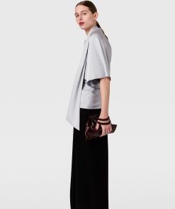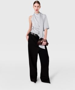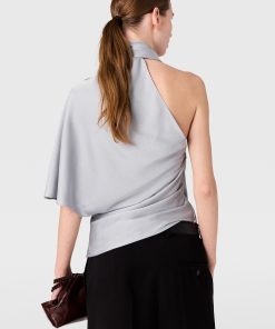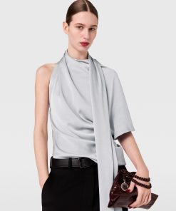 Spun from forest-friendly viscose, this top begins with a tie by the neck that streams down past the waist. Floating over the body, its slinky outline is cut with a single short, draped sleeve. Pair it with iconic Stella McCartney Savile Row tailored pants.