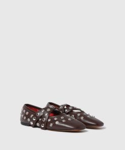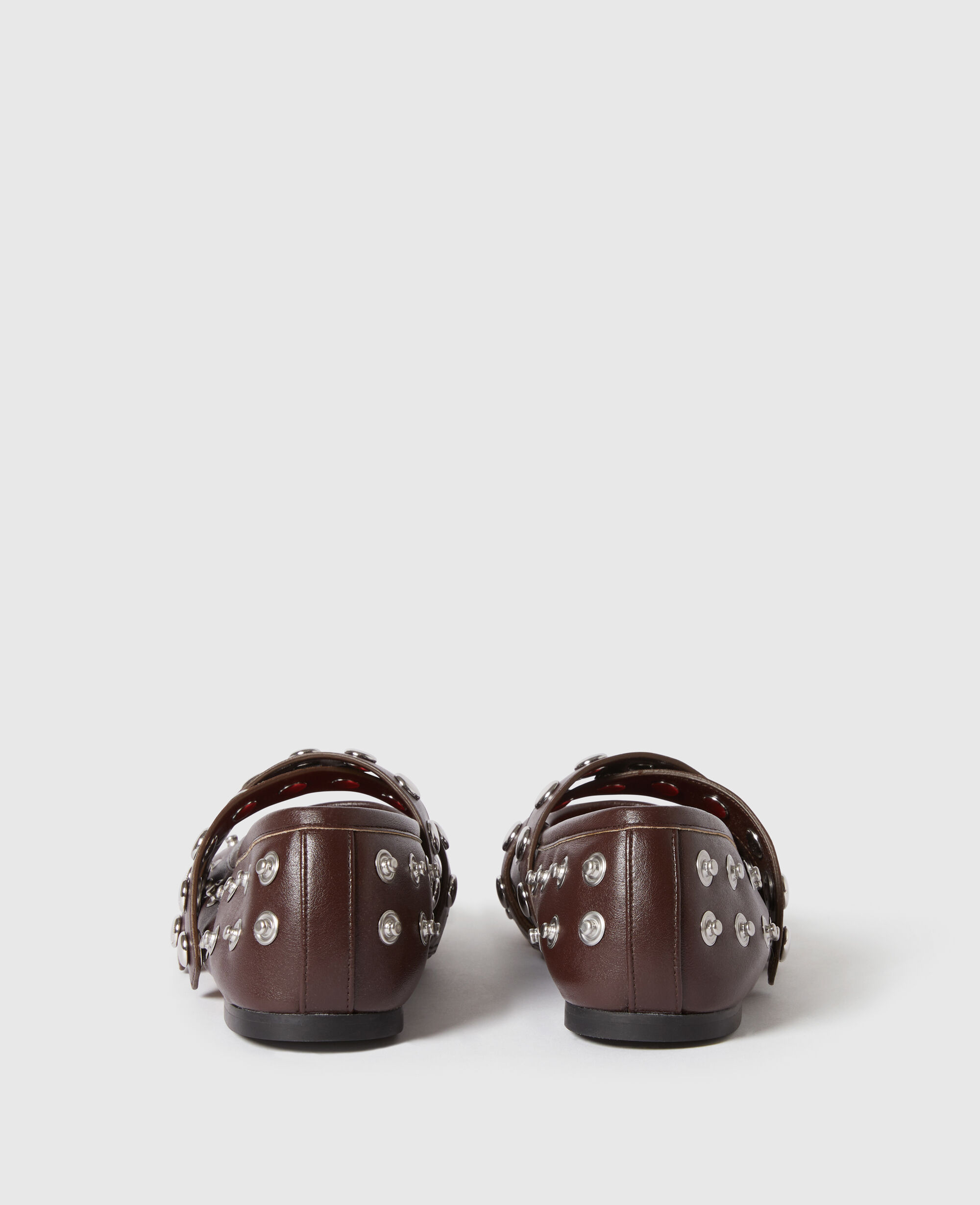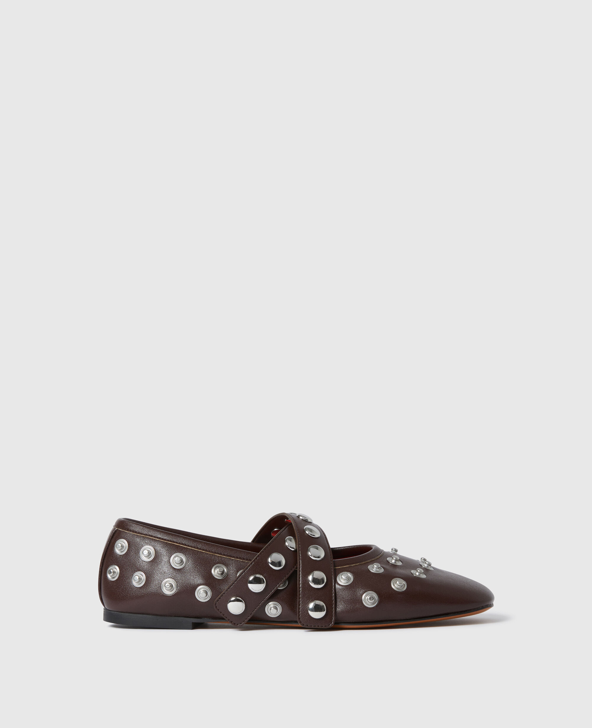 Sculpted from our soft, buttery vegan alternative to animal leather, our Ryder ballet flats are shaped to a feminine ballerina outline that’s studded with all-over silver poppers – adding a punky Stella McCartney edge, in step with the season’s bags and ready-to-wear wardrobe. Finished with a criss-cross snap closure that can be fastened across the foot.
