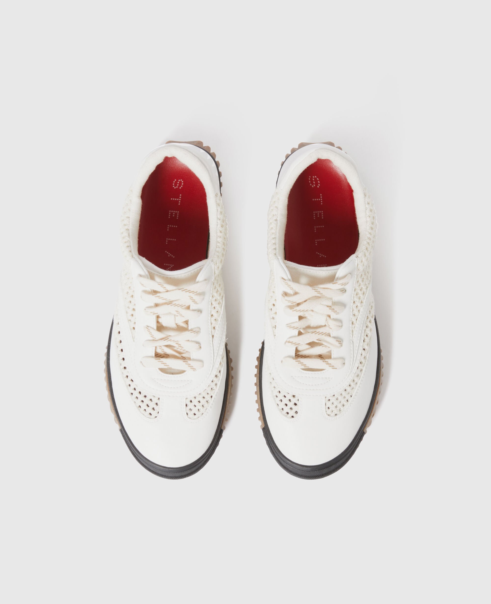 Our most sustainable sneakers ever, Stella McCartney revisits the S-Wave Sport sneakers for Fall 2025 – with every component incorporating innovations, including uppers in Piñayarn®, made from pineapple leaf waste. Inspired by vintage runners, the neat silhouette is crafted from panels of breathable mesh using recycled fibers and resting on a lightweight sole in a biobased, compostable and recyclable rubber alternative.